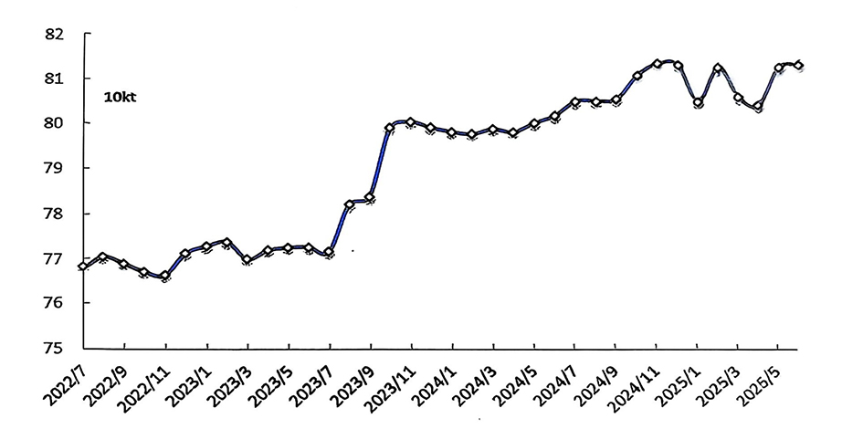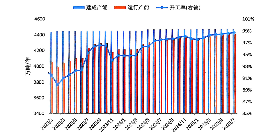 經(jīng)調(diào)整,6月份產(chǎn)量為364.5萬噸;預(yù)計7月份產(chǎn)量為376.9萬噸,同比增長1.5%,日均產(chǎn)量12.16萬噸,環(huán)比小幅增長0.07%。